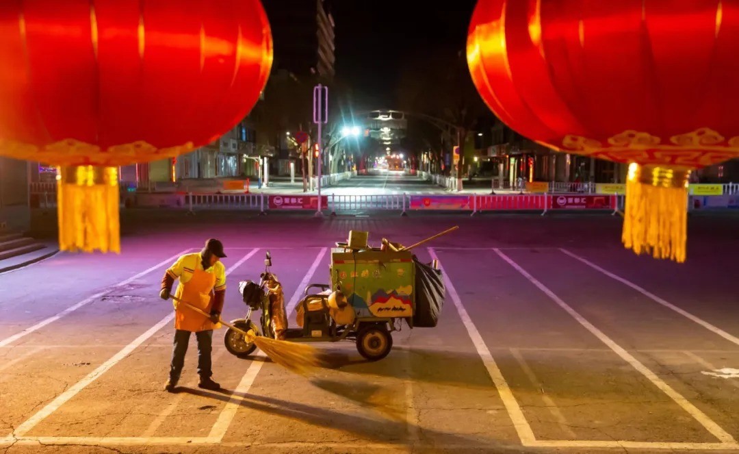 1月29日,环卫工东谈主在甘肃省张掖市明清街进行清扫功课。杨潇摄(中经视觉)