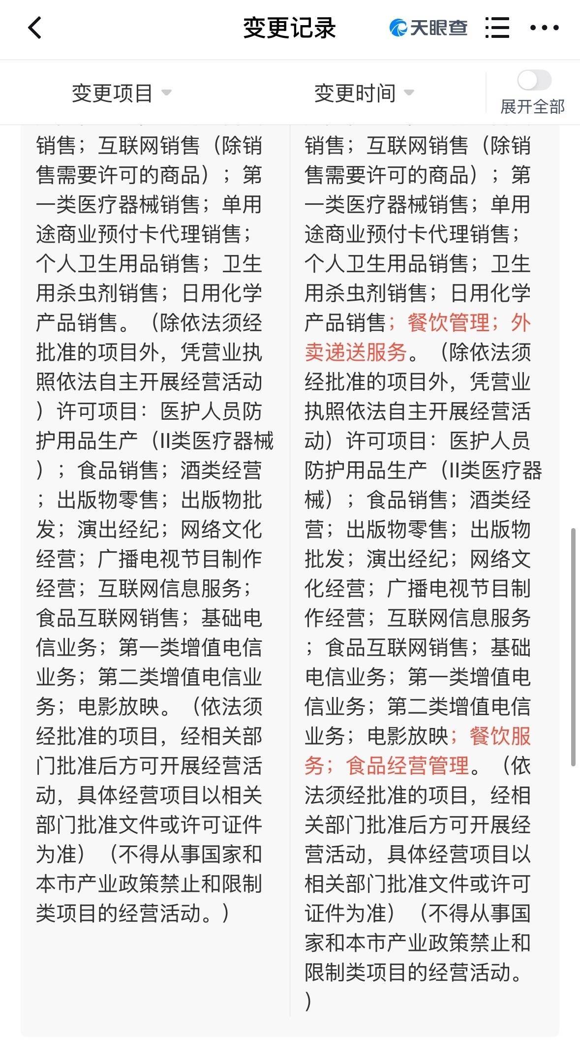 天眼查APP深切,11月27日,东方甄选(北京)科技有限公司发生工商变更,接洽鸿沟新增餐饮措置、外卖寄递工作、餐饮管业绩务。