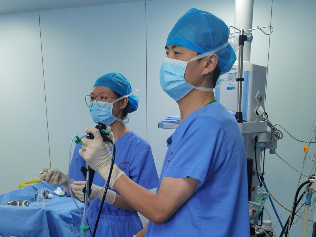 李俊颖大夫(右)在上司大夫蛊卦下进行支气管镜查验操作