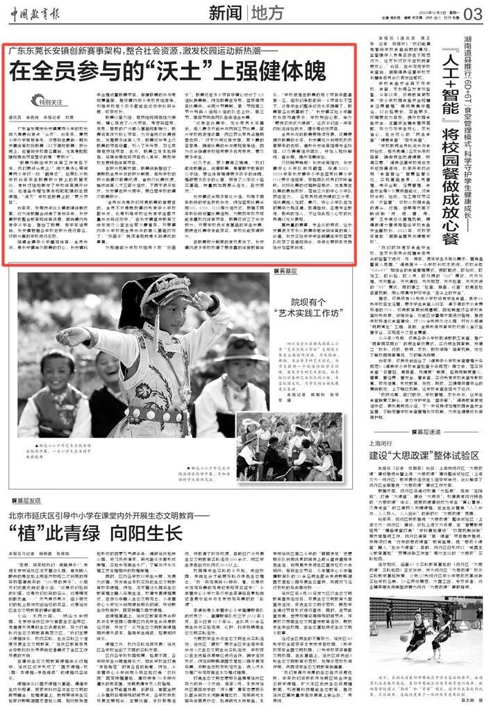 12月9日,《中国汲引报》第3版以《广东东莞长安镇篡改赛事架构,整合社会资源,激勉校园畅通新上涨——在全员参与的“沃土”上建壮体格》为题,温雅报谈东莞长安镇体请示通篡改举措。报谈指出,比年来,东莞市深入汲引轮廓改进,为体请示通创造了故意要求。在此基础上,长安镇积极整合汲引和体育资源,面向镇内统共中小学生推出了联赛,倒逼全镇中小学喜爱体育、全员参与,指挥学校每个孩子王人能在畅通中找到乐趣、获利成长。