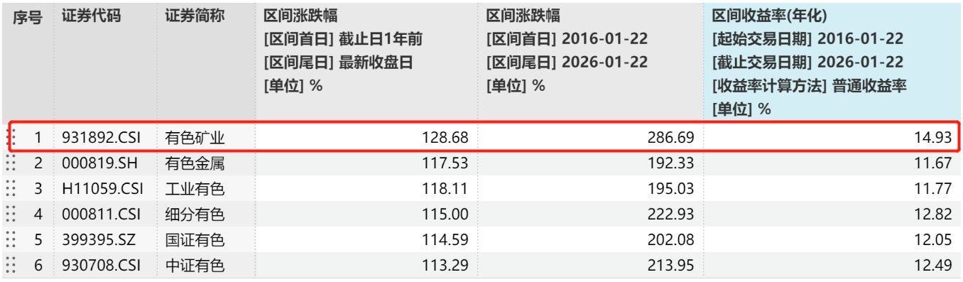 【聚焦上游资源品——有色矿业指数十年年化涨幅近15%】