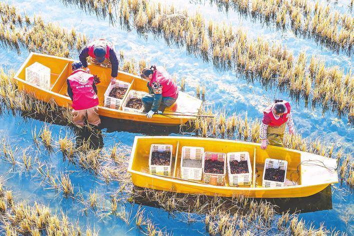 上月26日,潜江市龙湾镇郑家湖“四季有虾”繁衍基地,虾农们正在捕捞小龙虾。在省“虾十条”政策指引下,该市攻关“四季有虾”中枢工夫,兑现小龙虾从“卖一季”向“卖四季”调度。 (湖北日报全媒记者 任勇 摄)