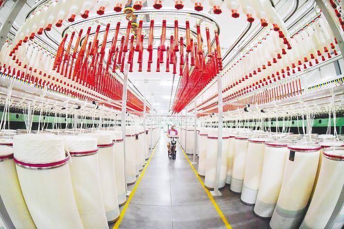 1月9日,宜城市天舒纺织有限公司贤惠车间一片接力,几百台纺纱设备高速入手,仅有少数工东谈主在操作面板前值守。 (视界网 安富斌 李勤 摄)